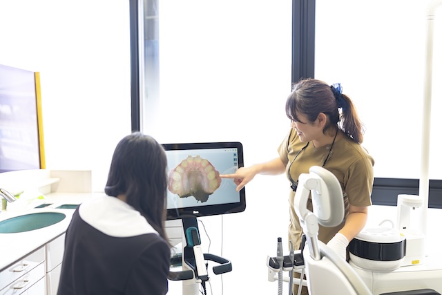 治療への不安を減らすため、やさしく丁寧でわかりやすい説明を大切にしています。CTによる精密検査や口腔内スキャナー(iTero)、口腔内写真などを活用し、お口の状態を実際の画像で確認しながらご説明します。目で見て理解できる説明を通して、安心して治療を受けていただけるよう心がけています。
